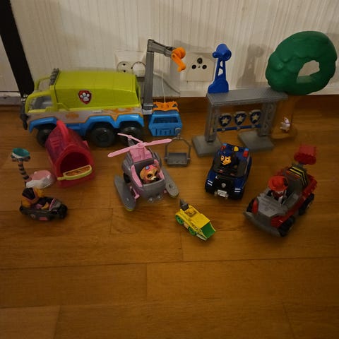 Paw Patrol lekesett som inkluderer en brannbil, en båt, div biler og figurer, det minste tårnet. Mye for pengene. Må hentes. Kan legge ut flere og bedre bilder senere. 😅