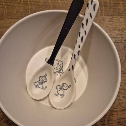 Selger 1 skje fra Min Spire. Designet for små barnehender som ønsker å spise selv.