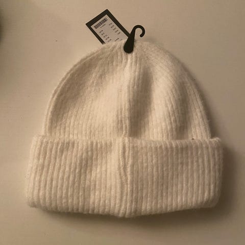 Lager 157 strikket lue og votter i beige farge. Laget av akryl materiale. Passer til kvinner og i one size.