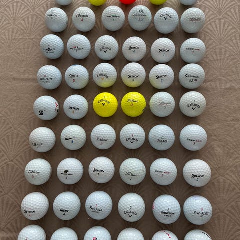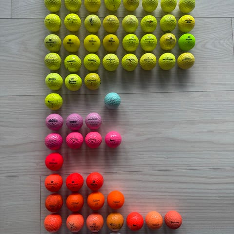 Pakke med uskadde golfballer i ulike merker..