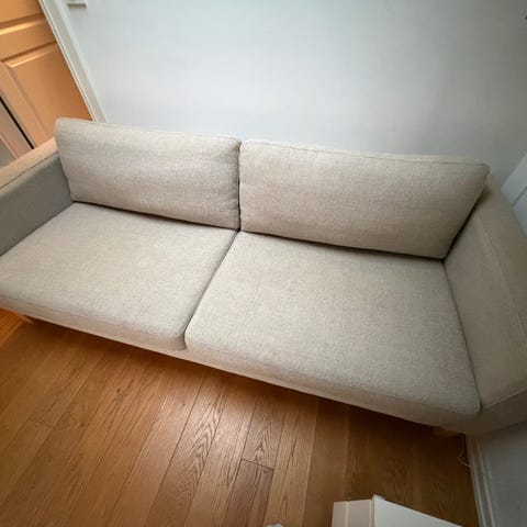 Brukt sofa med flere år igjen gis bort. Må hentes snarest på Kampen i Oslo. Leilighet i 6. etg uten heis. Jeg kan bistå med bærehjelp ned trappene om ønskelig💪