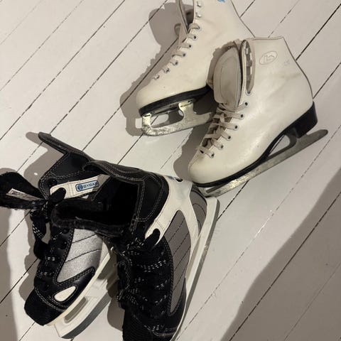 Bauer barn ishockeyskøyter i størrelse 32-35. Skøytene er laget med materialer egnet for ishockeybruk.