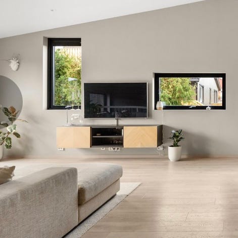 Du kan velge å plassere TV-benken på gulvet, eller å montere den på veggen for å frigjøre gulvplass.