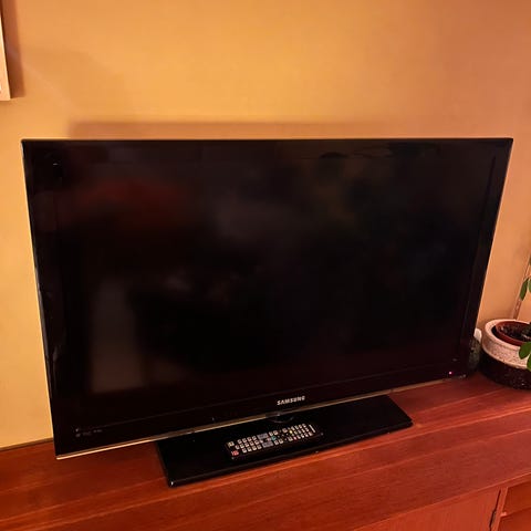 Fin TV som fungerer svært godt, men har en skade som synlig på bilder (tre streker i midten av TV-en). Den fungerer ellers veldig godt, og byttes nå ut fordi jeg flytter. TV-en er 51’’, og den må hentes før 15. januar.