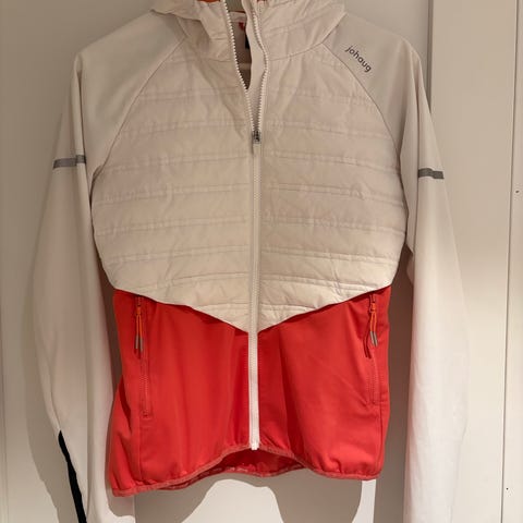 Helly Hansen jakke i størrelse M for dame. Jakken er oransje og laget av polyester. Den har hette og glidelås, egnet for utendørs bruk.
