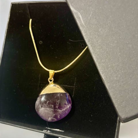 Nydelig lilla drømmende Ametyst anheng med et Gullbelagt Stainless Steel /rustfritt stål halskjede! Utrolig fint! Naturstein, gem, krystall, edelstein. Allergivennlig, og tåler vann!