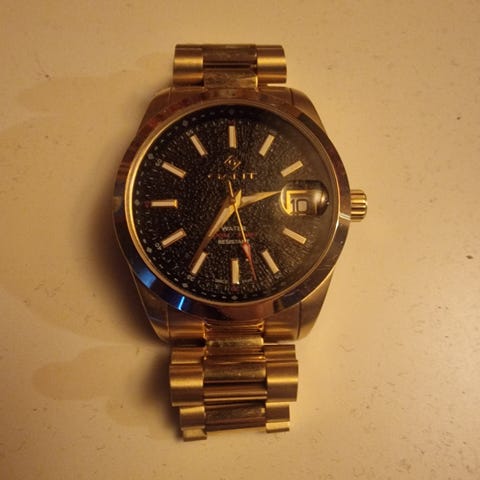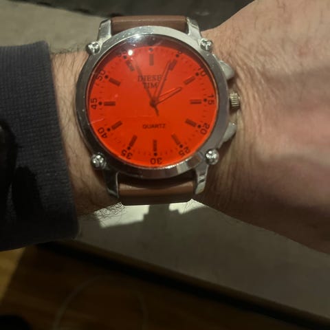 Jeg selger min Diesel DZ4341 herreklokke. Klokken er i god stand og har ingen feil eller problemer.