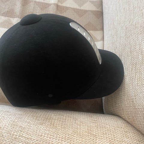 Meget pent brukt ridehjelm fra Alpha Horse str 57. Kun brukt som reservehjelm. Med lufting bak