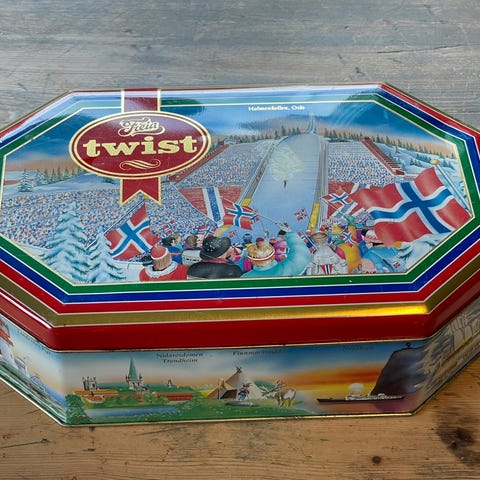 Perfekt som gave til en tur-entusiast, til oppbevaring av tursjokolade på hytta, eller som et dekorativt innslag i et retrokjøkken.