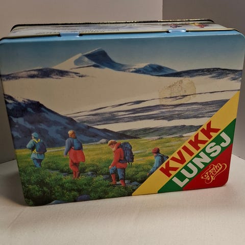 Vintage Freia Kvikk Lunsj-boks – Nostalgisk turmotiv i flott stand