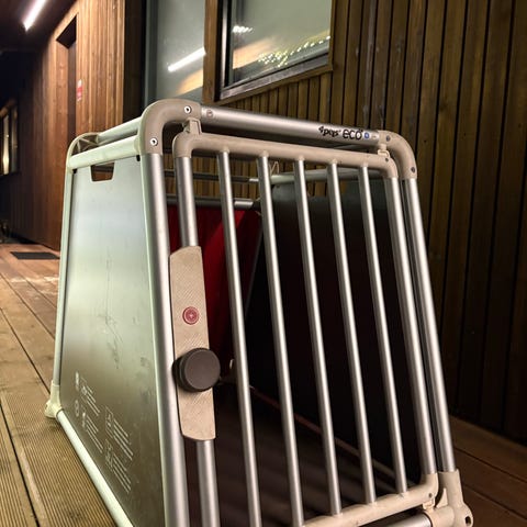 Fremstår som nytt, vært lite brukt da hunden vår ikke trives i buret når vi kjører. Hun har fått plass i baksetet.