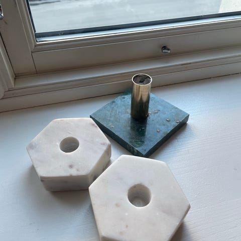Lysestaker laget i jesmonite. 80kr per stk eller 140 for begge. Hentes i Sandnes