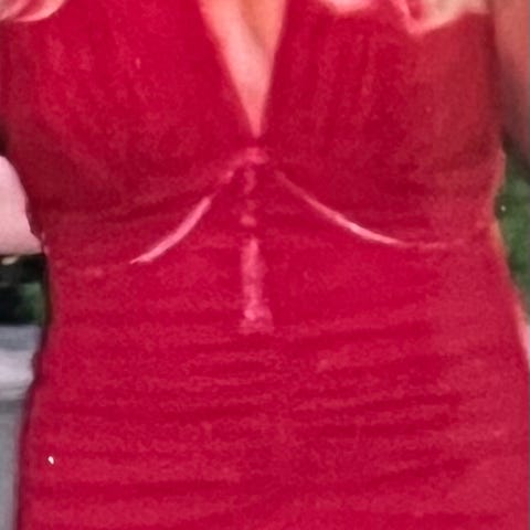 Lysegrønn kjole til spesiell anledning: Litt usikker på størrelsen men passer ei jente/dame med høyde 155-160 cm. Kjolen har dekorative detaljer på overdelen og et langt, flytende skjørt. Egnet for spesielle anledninger