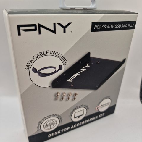 Akasa SSD & HDD Adapter som passer til to notebook-disker i PC-kabinett. Adapteren støtter 3,5" og 2,5" disker, og gjør det mulig å montere både SSD og HDD i samme PC-kabinett.