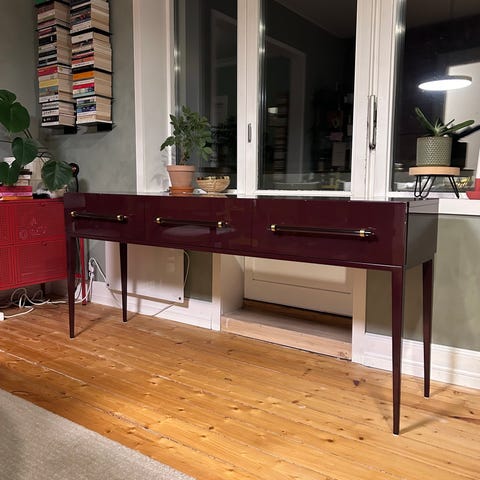 Nydelig vintage sjenk i tre. God oppbevaringsplass, Hull bak for å trekke kabel til stereoanlegg ol. Perfekt til vinylsamlingen. Har noen kosmetiske merker. Selges pga. mangel på plass