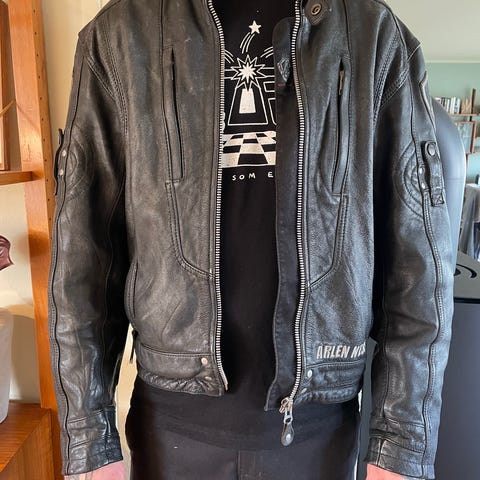 Helt ny skinnjakke.ekte skinn. Passet ikke meg, så denne er til salgs, står oppført 5xl på lappen, men er nok mere en Large / xl i størrelse. Kul jakke, skinnet ser bra ut, å virker bra. Noen interesse for denne? 3 tusen kr. Holder til på 2847 kolbu, østre toten. Går som str xl, 51 cm rundt mage, armlengde 48 cm, skulder til skulder, 55 cm, fra nakke krage å ned mot rumpe, 68 cm. Passer en på 174 cm høyde, å med vekt på ca 90 kg.(Kina jakke)