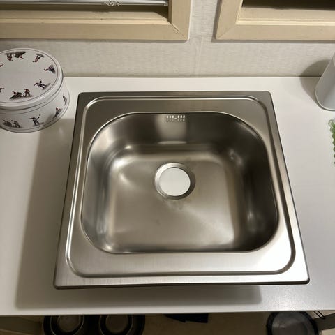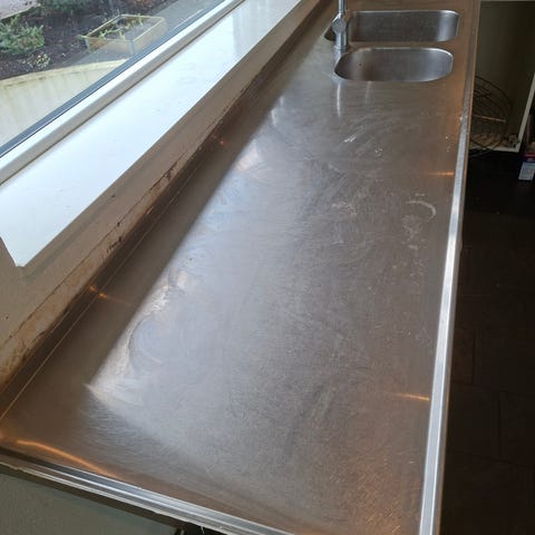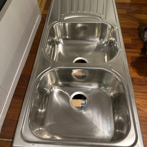 Dobbel kjøkkenvask i rustfritt stål med to kummer. Egnet for montering på kjøkkenbenk. Materialet rustfritt stål gir holdbarhet og enkel rengjøring.