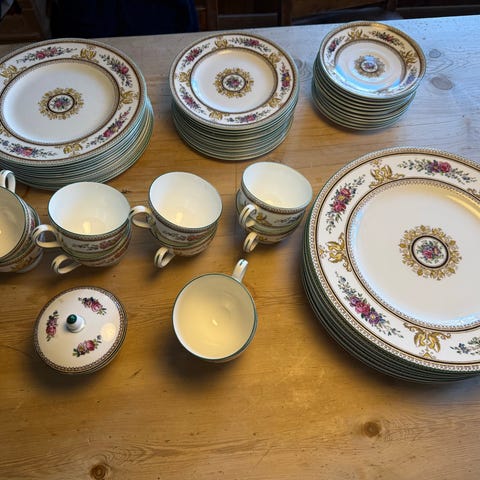 Flott Royal Copenhagen « Golden Basket» kaffeservise selges. Alle deler er uten skader.