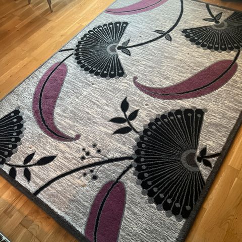 Grå grått lilla teppe Orientalsk oriental gulvteppe blomsterteppe