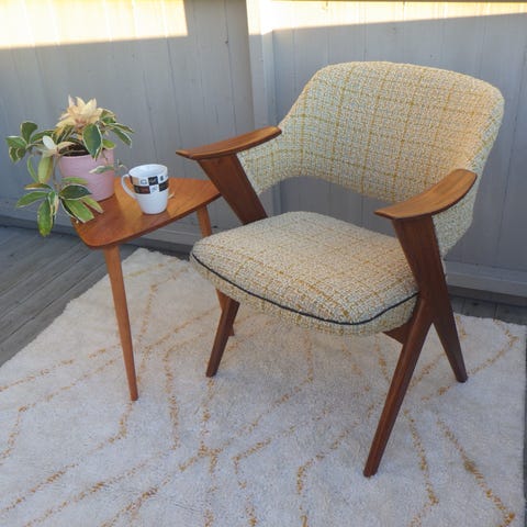 60-talls teakstol i ull – klassisk skandinavisk design
