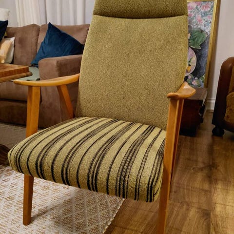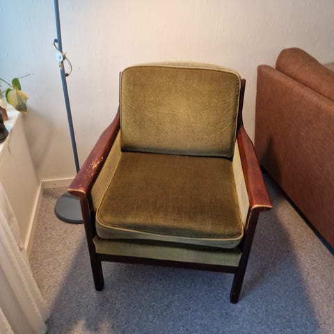 Stikkord : vintage / retro / Norsk Design / klassikere /interiør/ lenestol / godstol / blikkfang / kvalitet / ullstoff/ teak