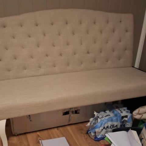 Fin sittebenk med oppbevaring. Vi har malt den i fargen muskattnøtt, malt med heftgrunning først.