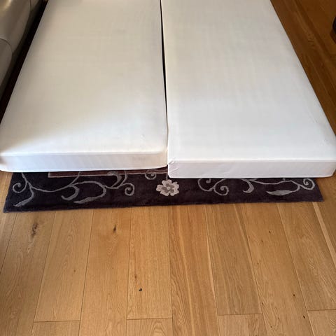 Madrassen er lite brukt, har stått på gjesterom, og har alltid vært brukt med overmadrass. Jeg kjøpte den brukt for ca. et halvt år siden, men har ikke brukt den selv, og forrige eier opplyste også at den var lite brukt.