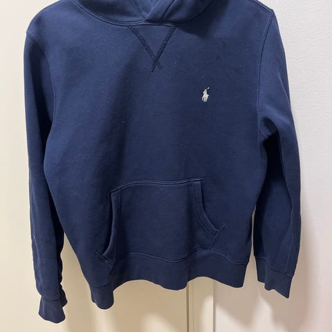 Polo Ralph Lauren barn hettegenser i størrelse 14-16 år unisex modell. Genseren er laget av bomull og har en grå farge. Den har hette og et trykk foran med Polo Bear-motiv.