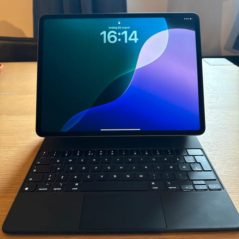iPaden ble kjøpt ny i november og har kun vært brukt på én jobbreise, og fremstår derfor som svært pent brukt.