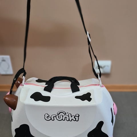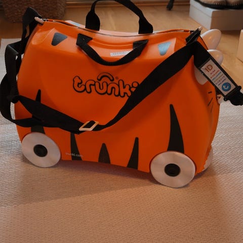 Det er blitt klistret på tilhørende klistremerker på kofferten, men om ønskelig, er disse til å ta av.