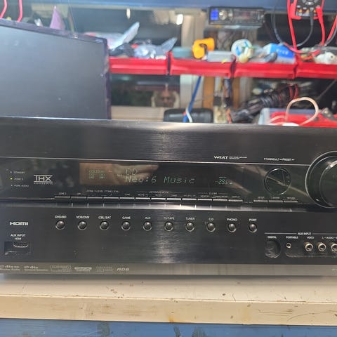 Onkyo TX-NR579 AV-receiver i meget god stand. Dette er en solid og kraftig hjemmekinoforsterker med rikelig med tilkoblinger, høy lydkvalitet og støtte for moderne lyd- og bildeformater.