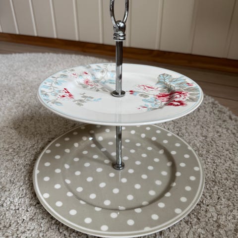 Nydelig etasjefat med blomstermotiv