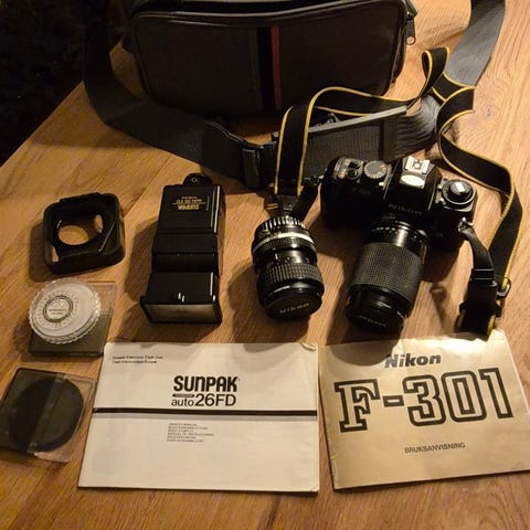 Pent brukt speilrefleks kamera. Med kamera veske, stropper lader og minnekort