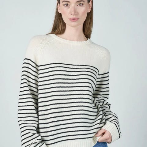 Helt ny superfin og myk genser fra otay: Kaia Genser - Off White/Bordeaux. Merkelapper henger på. Sammensetning: 10 % kashmir / cashmere, 90 % ull