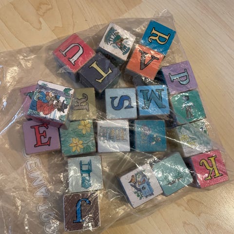 Klossene har forskjellige mønstre og størrelser, egnet for barn til lek og læring.