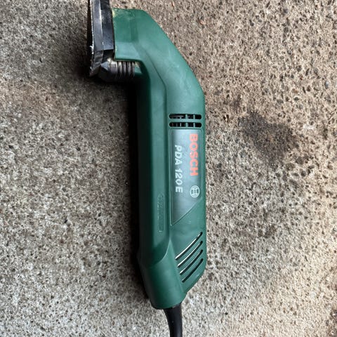 Liten og hendig pussemaskin på ledning til hjørner og mindre flater.