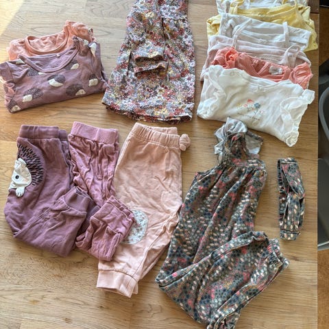Klespakke størrelse 74 🌸 Noen plagg nesten ikke brukt. Et par av buksene er i str 68, men tilsvarer 74. Ene kjolen er også i 68, men tilsvarer 74 i str. Klær fra hm, cubus, lil atelier, lindex og zara.