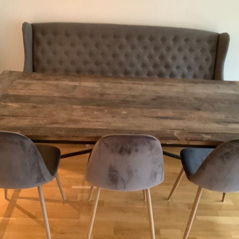 Selger 4 stk solide stoler i eik. Se kvittering fra Home & Cottage. Medfølger puter til alle, som vil bli vasket føe overlevering.