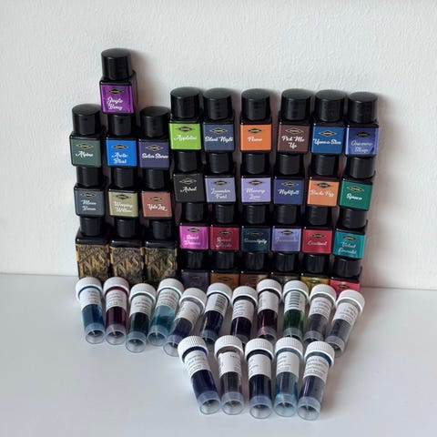 Flasken er nesten ubrukt, kun åpnet for å swatch blekket.