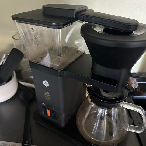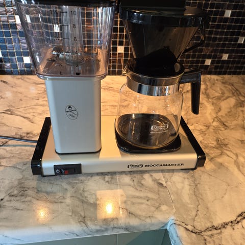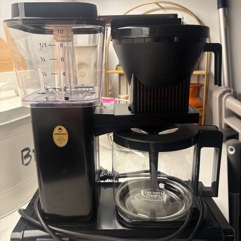Melitta kaffetrakter med svart plastkropp og glasskanne. Mangler toppen av filterdelen, men kan kjøpes både på elkjøp, power eller på nett. Påvirker ikke bruken av maskinen.