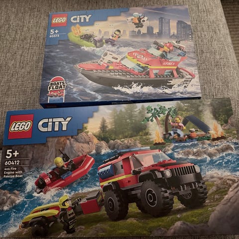 LEGO City 60319 lekesett som inkluderer en brannbil, en politi-motorsykkel, en bil, og flere minifigurer. Settet består av 295 deler og passer for barn fra 5 år og oppover. Temaet er byliv med fokus på brannslukking og politiaksjoner.