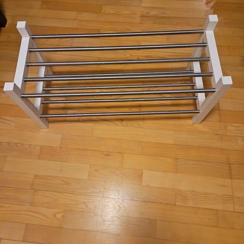 2 stk. hvite skohyller fra IKEA som har vært montert oppå hverandre. Selges samlet for 500 kr.
