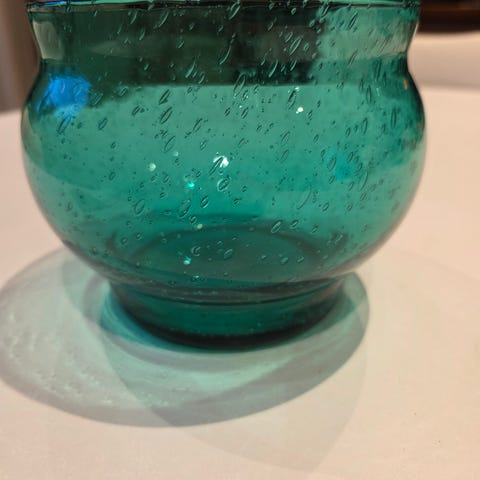 Hadeland Glassverk glassservise bestående av flere deler i grønt glass. Serviset inkluderer glass og fat med en strukturert overflate som gir et dekorativt uttrykk. Str står på siste bilde. Pris på stort fat er 1200kr, mindre fat 800kr. Stor bolle 600kr mindre bolle 400kr. Kjøper du alt er prisen 2500. Dette bør hentes i Kristiansand for er ganske tungt. Tror aldri dette er blitt bruk.