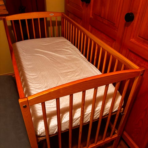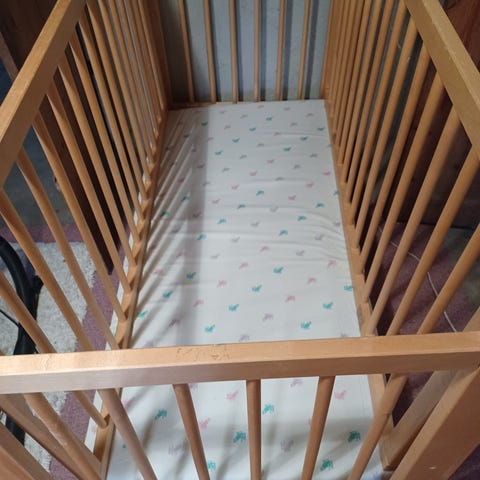 Solid sprinkelseng i tre. God madrass følger med om ønskelig.