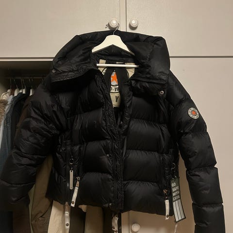 Str XS. Brukt en vinter. Kjøpt pent brukt for 4000. Farge: champagne. Den man bruker for å henge den opp har røket, røk før jeg fikk den. Kan hentes eller møtes🩷