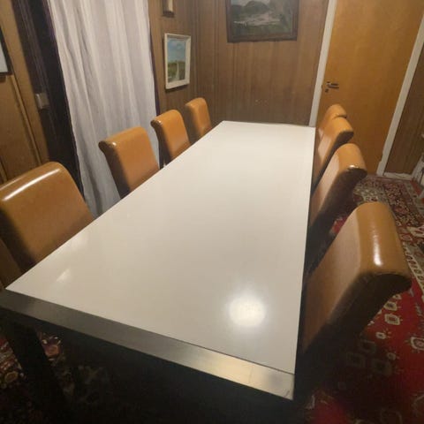 Spisebord med 8 stoler og 2 klaffer