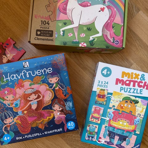 Puslespill, bøker, bamser, bilbane, klosser etc