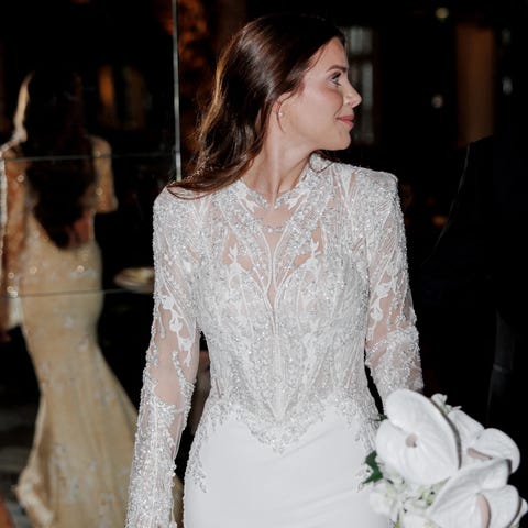Kjøpt på Kristins Brudesalong. Renset etter bryllupet. Noe mindre flekker på slepet, kan forsøkes fjernet med sterkere midler, bleket eller at man lager slepet kortere. Vil uansett ikke synes under slør.