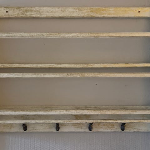 Fin tallerkenhylle til salgs. Har plass til både kopper og tallerkener.