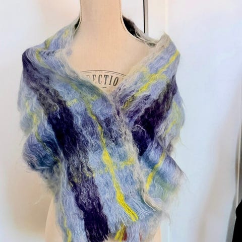 Sjal hjemmestrikket i ull